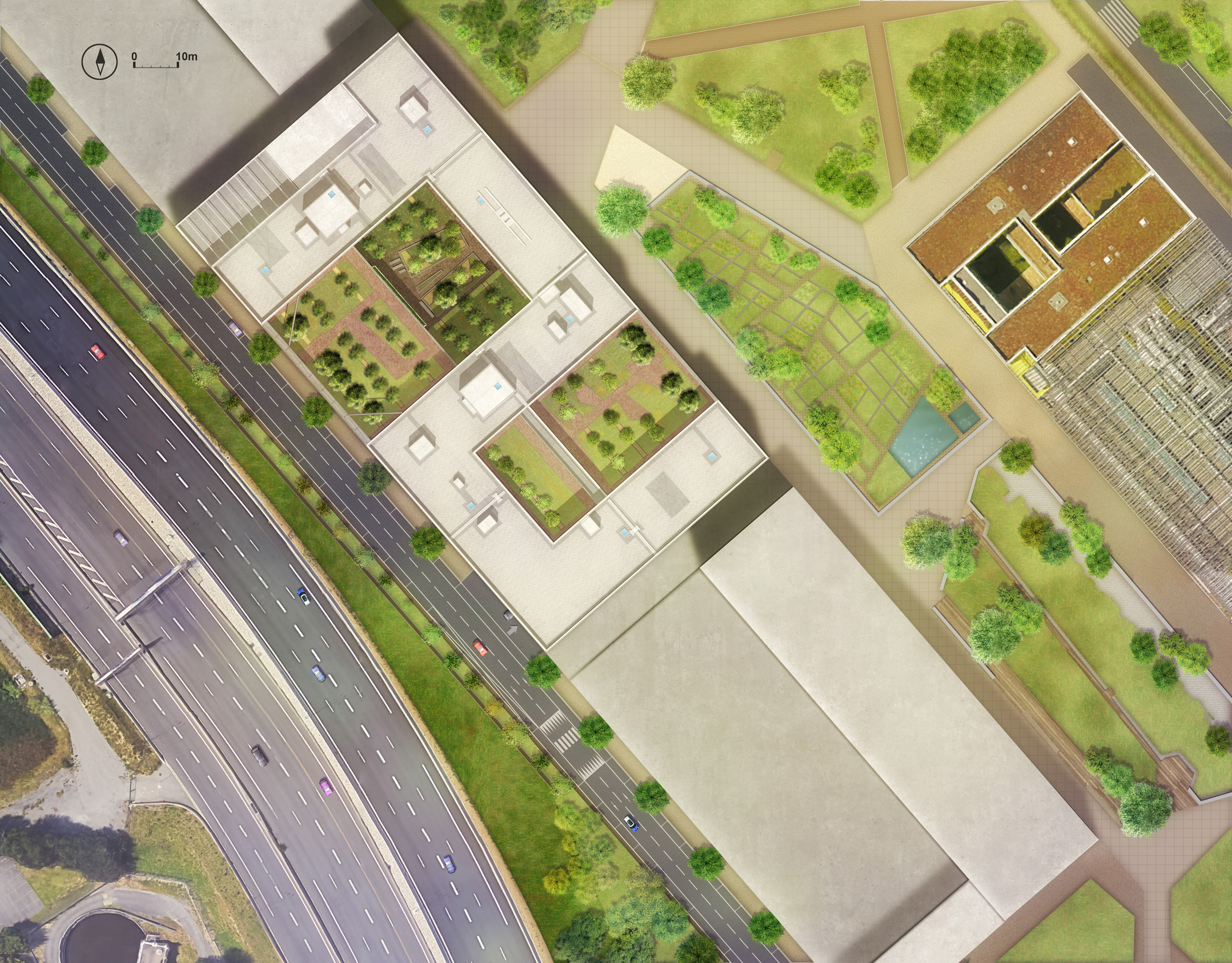 - Larges espaces extérieurs que ce soit en pleine terre dans le patio ou en toitures végétalisées
