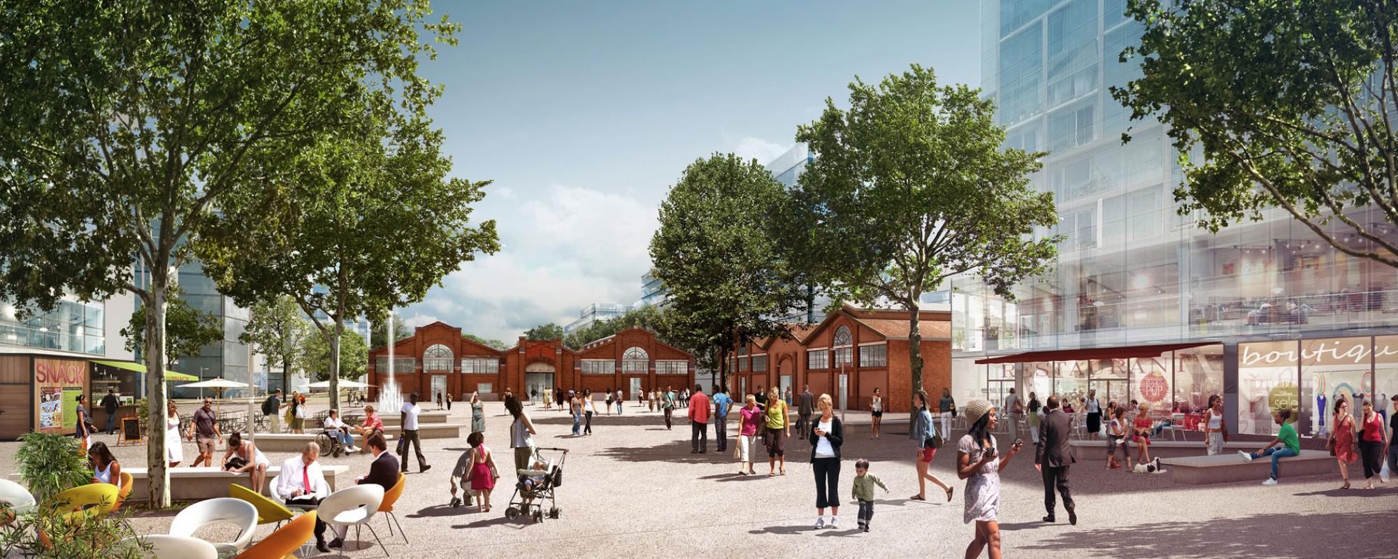 Ici se construit un lieu de vie animé, qui a accueilli ses premiers habitants en décembre 2015, dans lequel on trouvera à terme toute la palette des commerces et services de proximité.