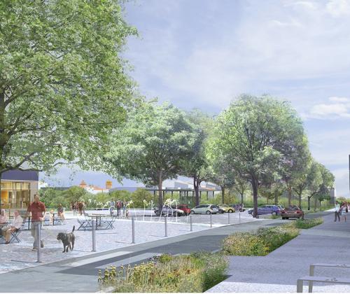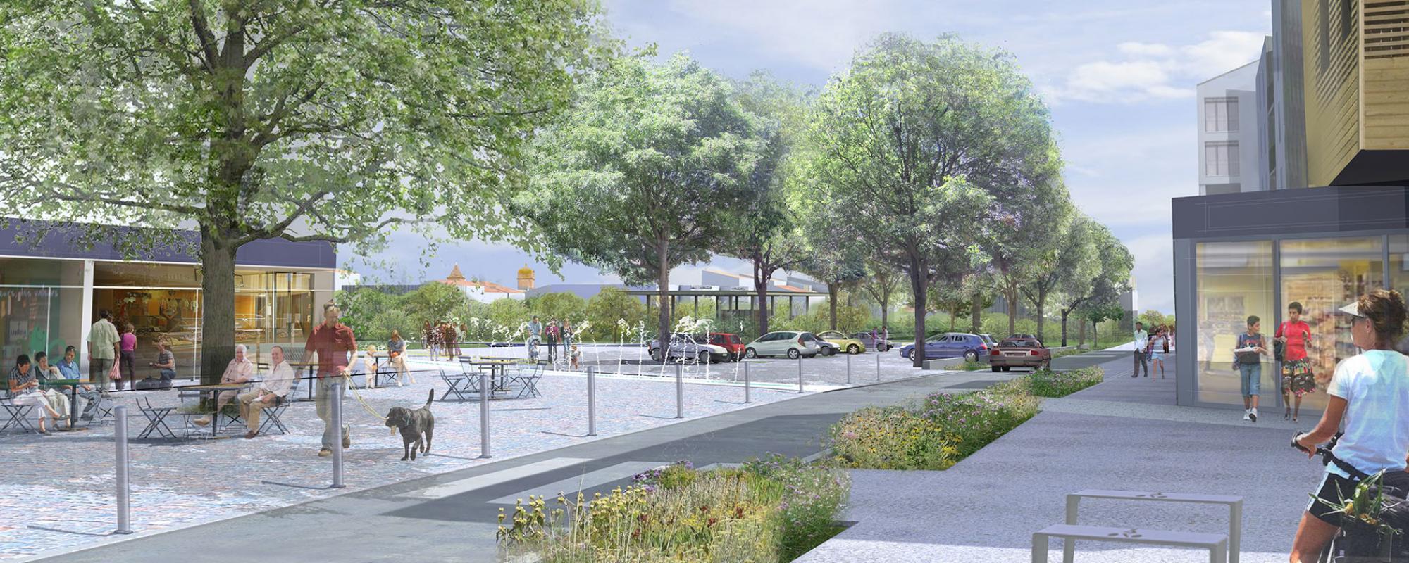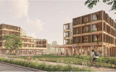 Equipement public : équipement intergénérationnel regroupant une offre d'hébergement pour personnes âgées et une crèche, un nouveau groupe scolaire, une halle marché, des jeux d'enfants et une prairie publique.