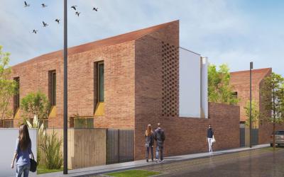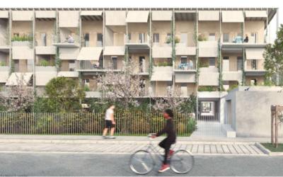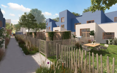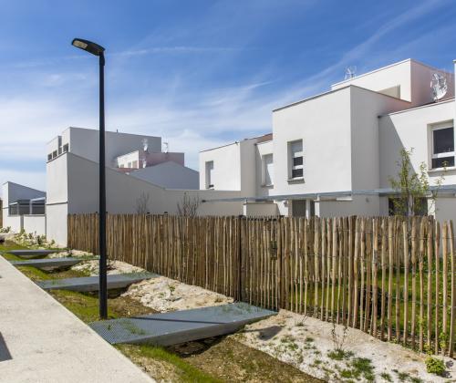 L’habitat mixe des appartements dans de petits collectifs à des maisons de ville et des villas, le tout relié par des venelles piétonnes arborées.