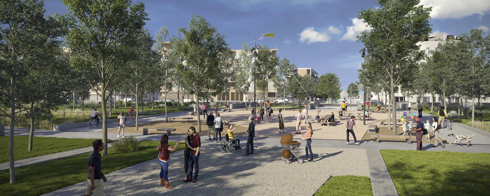 Cette opération d’aménagement propose des espaces publics de grande qualité autour des pôles de centralité que constituent les 2 gares, l’école Fleurance et le projet de place commerciale, tout en valorisant les atouts naturels et patrimoniaux, en particulier le parc des Berges du Touch.