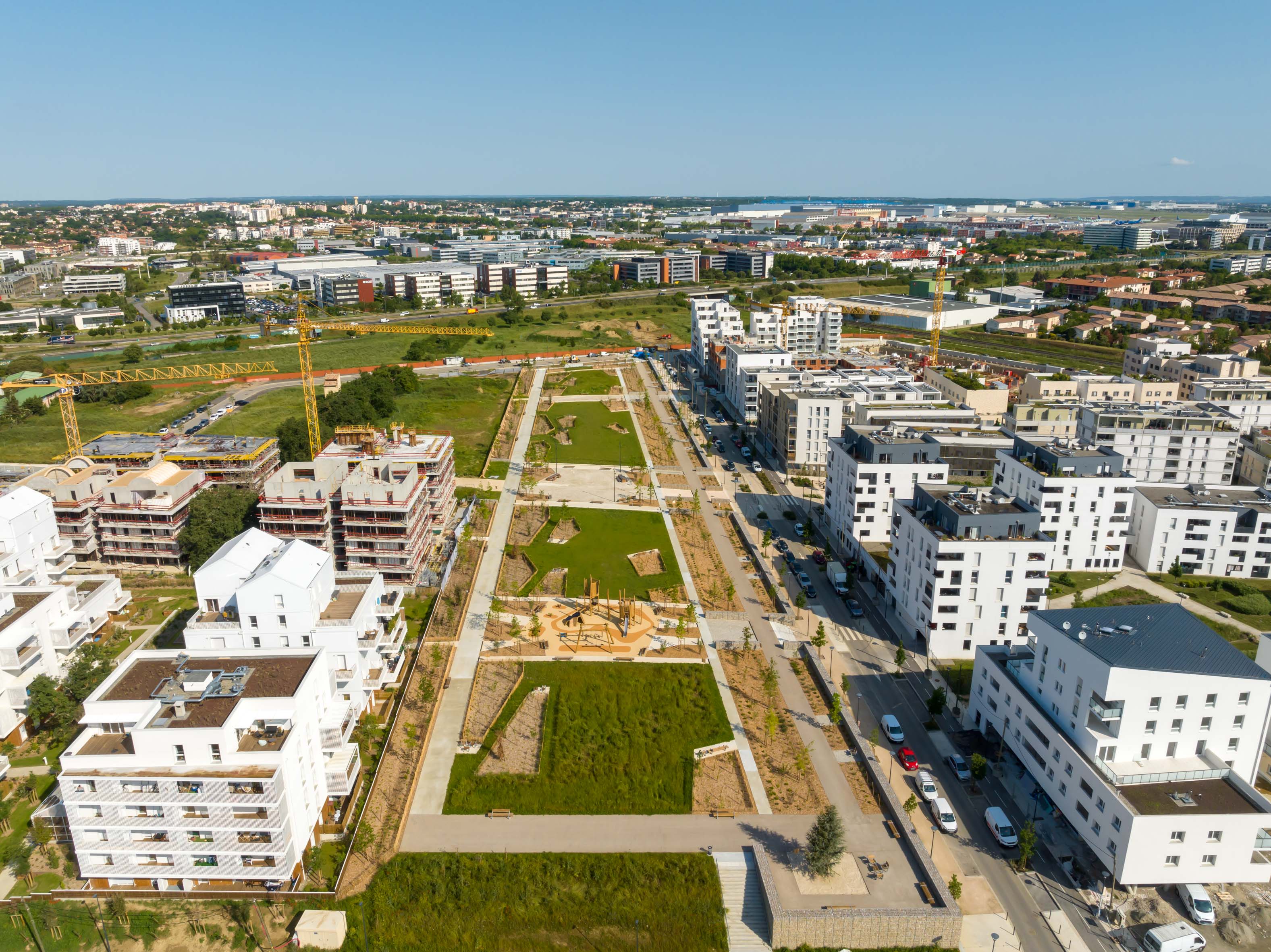 Conception bioclimatique, matériaux biosourcés, économie circulaire, espaces communs partagés, potagers, ateliers vélo, etc... autant d'idées mises en oeuvre sur ce nouveau quartier de Toulouse.