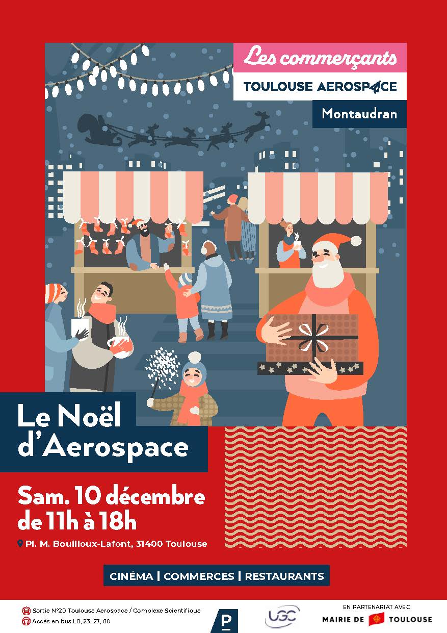 C’est le 10 décembre et Noël sonne à vos portes, ainsi que ses précieux marchés... Cette année, pas une commune n’y échappe, envahissant les places de toute la France, celles des petits villages comme des grandes villes ! Alors pourquoi venir à celui -ci en particulier ? Parce que la magie de Noël n’opère que lorsque toutes les conditions sont réunies ! Et c’est une escapade chaleureuse et féérique qui s’offre à vous à quelques jours de Noël. Bienvenue au village de Noël de Toulouse Aerospace dans le coeur de quartier Montaudran, le samedi 10 décembre de 11h à 18h, et plus si affinités avec les commerçants du quartier...