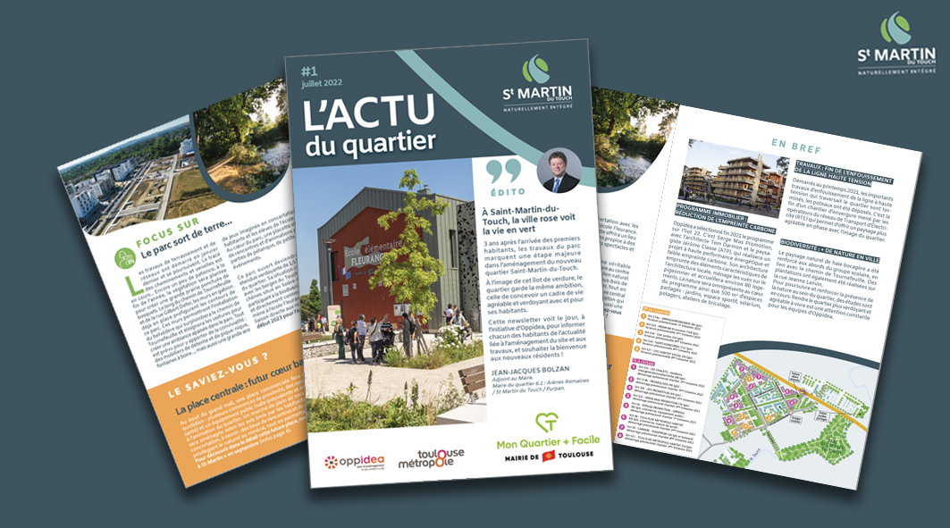 Aujourd'hui près de 600 logements sont livrés sur le nouveau quartier St-Martin-du Touch (secteur de la Halte St-Martin) aménagé par Oppidea pour Toulouse Métropole. La première newsletter pour les habitants "L'Actu de St-Martin" vient de paraître.