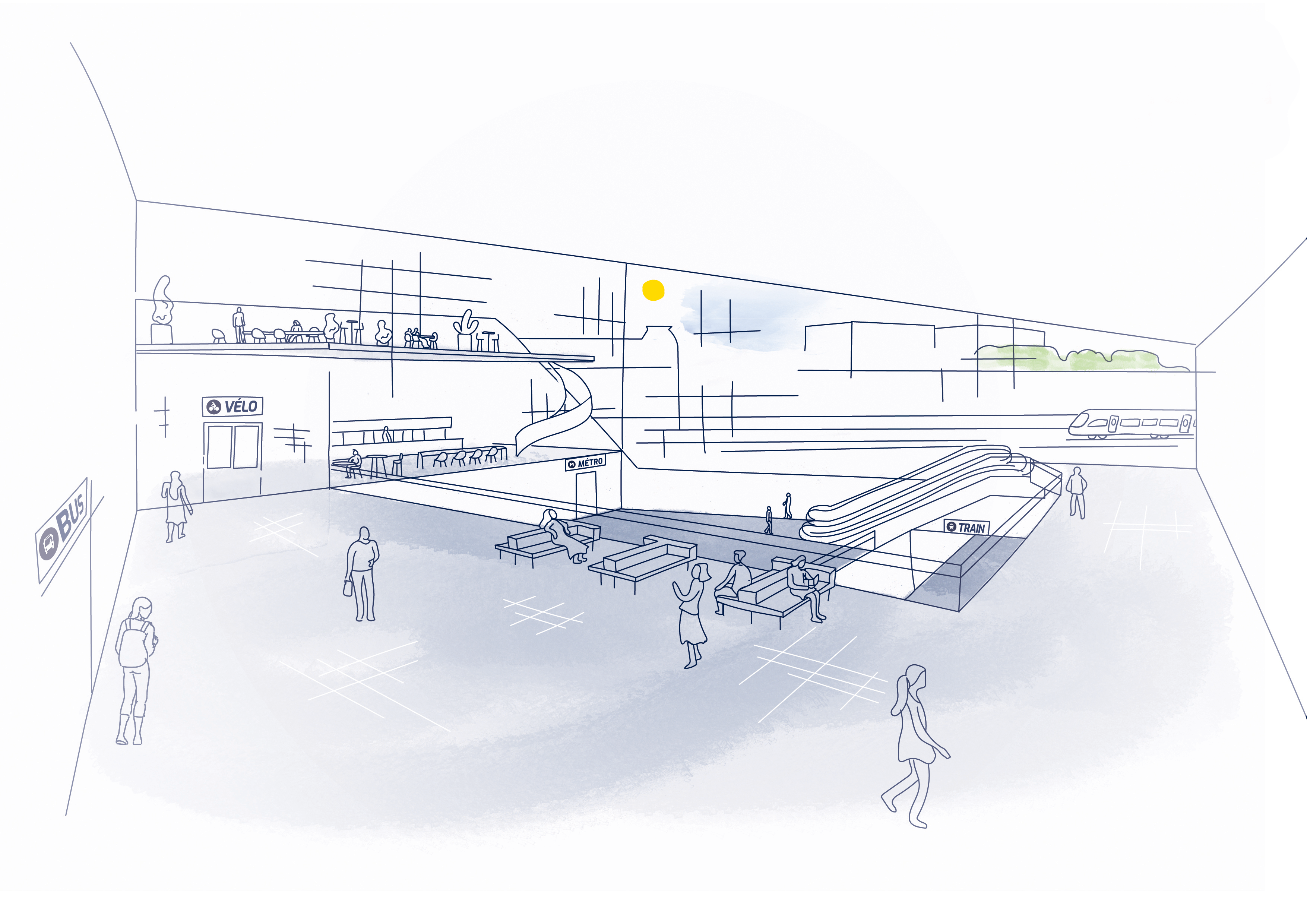- Une Halle des Transports : cœur du futur Pôle d’Echanges et de l'intermodalité sur le secteur, elle connectera notamment la gare ferroviaire, les lignes de métros (A et future ligne C), la gare bus et une nouvelle Vélostation.