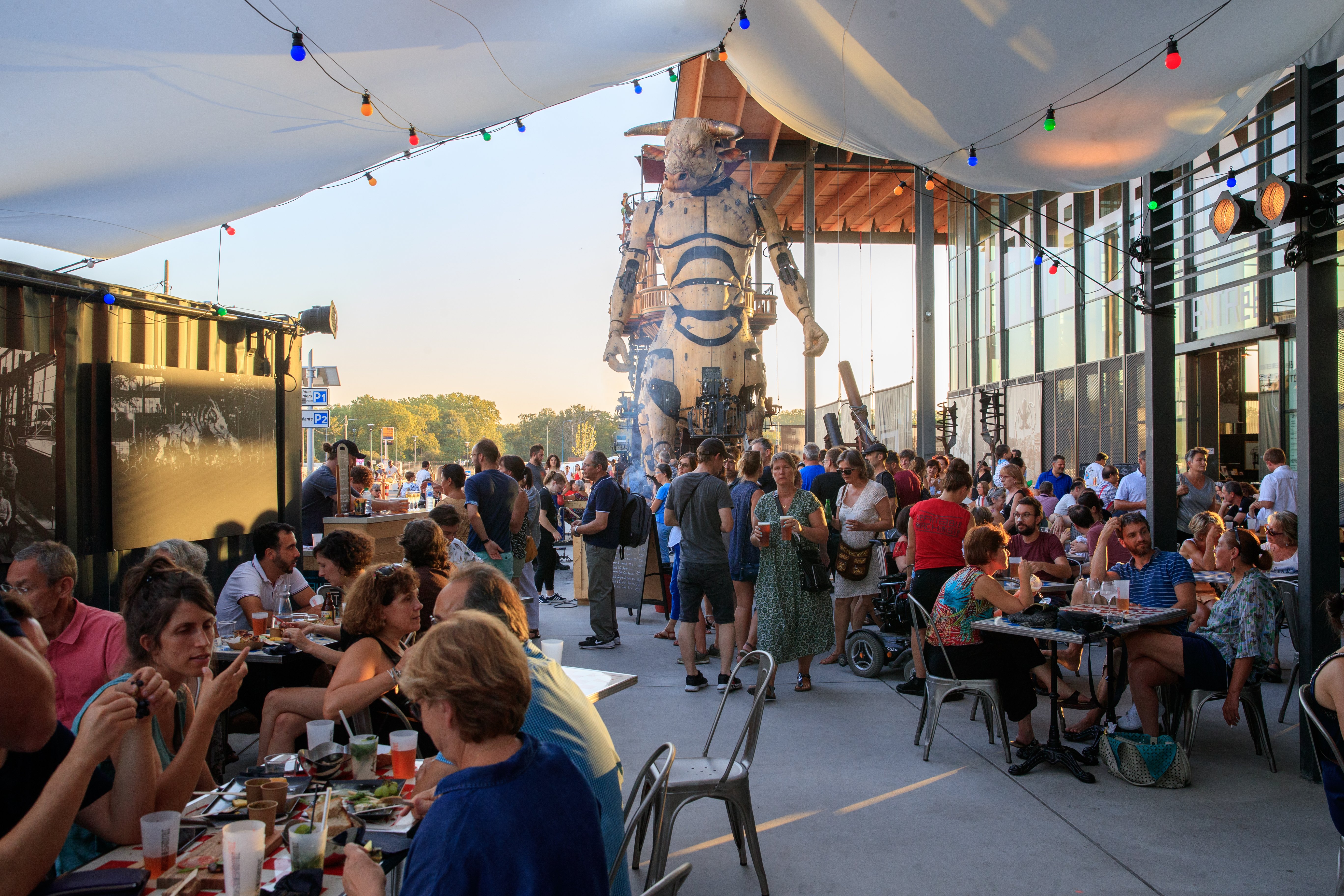 Dans le même ordre d’idée, l’écoquartier de Toulouse Aerospace est aujourd’hui incarné par La Halle de la Machine et ses géants articulés de spectacle qui défilent régulièrement sur l’ancienne piste des géants de l’Aéropostale, préservée. Les habitants peuvent profiter de ces événementiels hors du commun, et des animations récurrentes proposées par l’association à la tête de cet équipement de quartier hors normes !