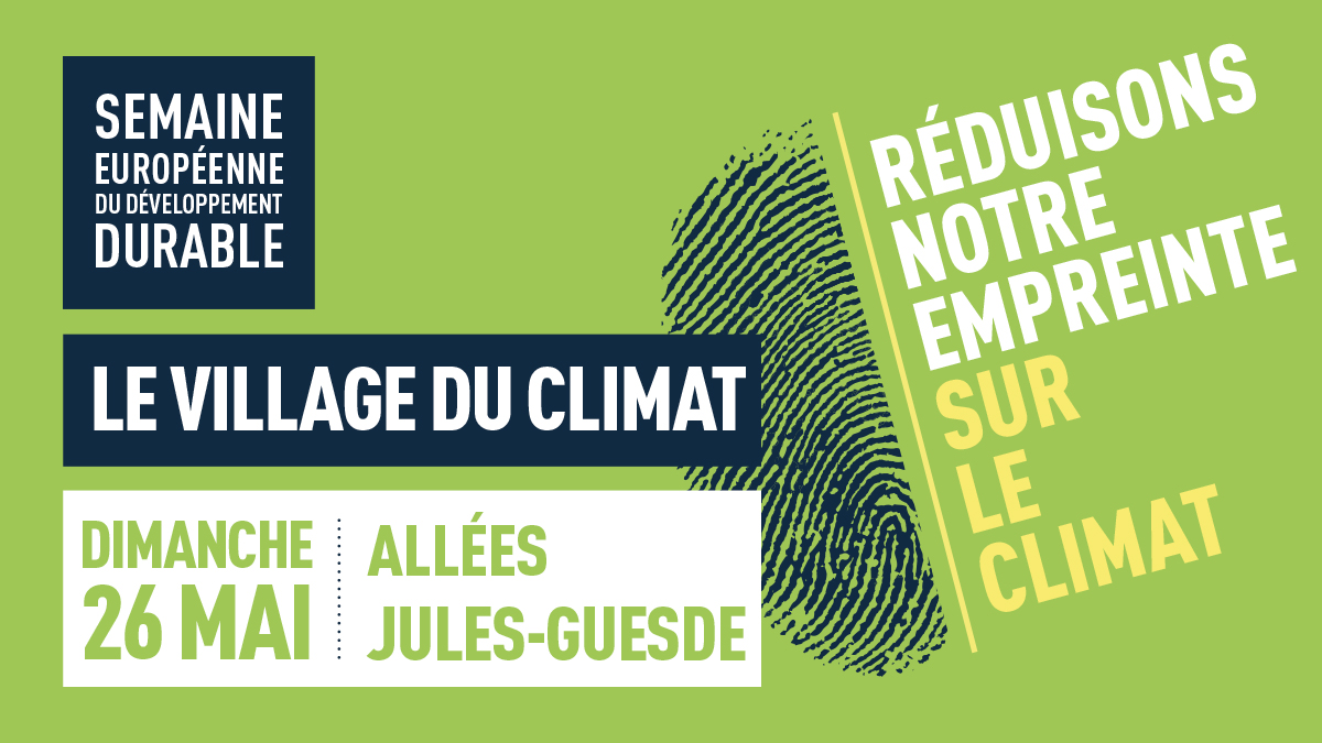 Rendez-vous le dimanche 26 mai, de 9h30 à 18h30 au Village du Climat sur les allées Jules Guesde pour passer à l’action en famille !