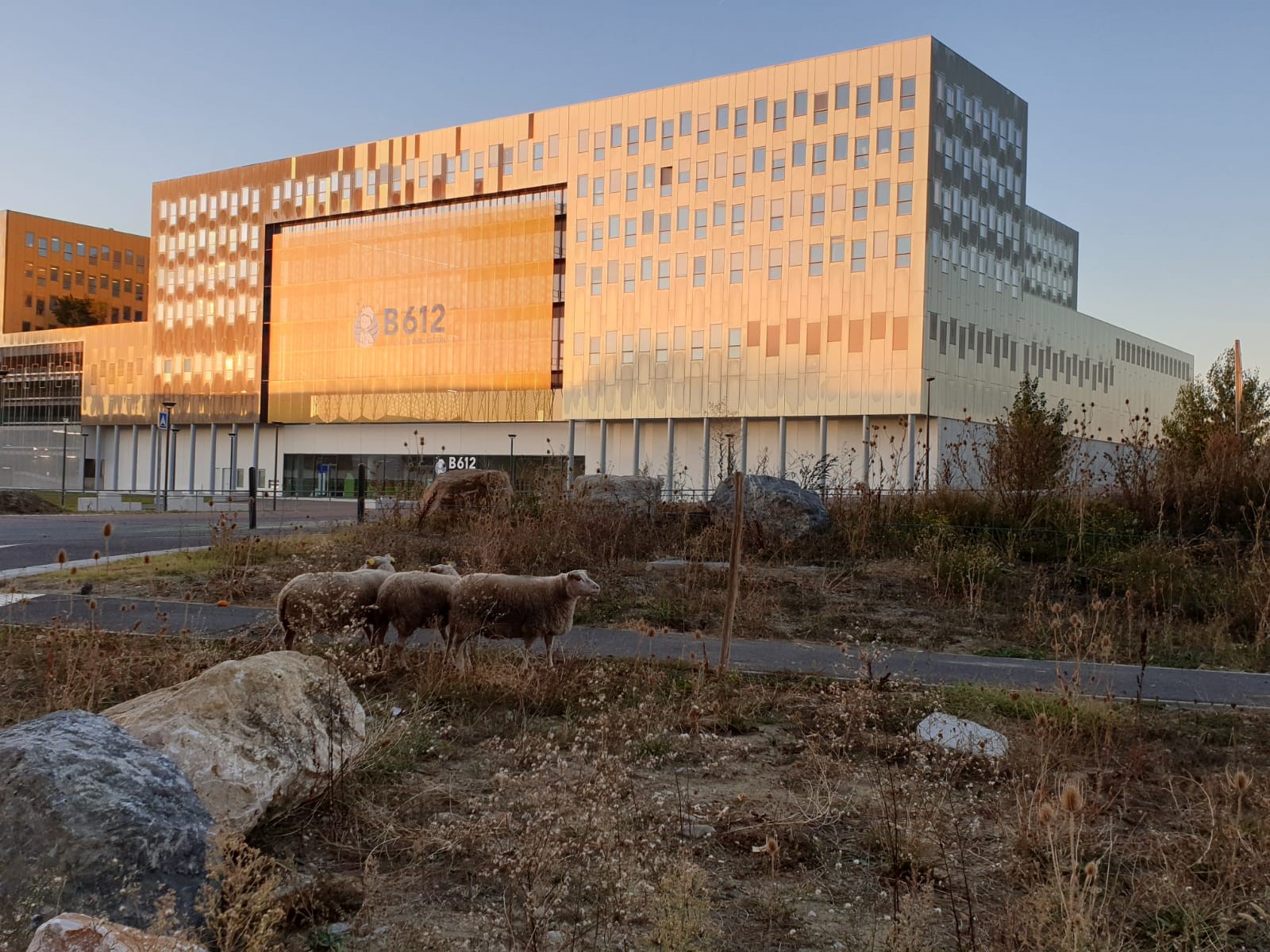 Depuis le 11 octobre, des moutons ont pris possession des espaces verts au pied des bureaux du Campus d'innovation, au sud de l'écoquartier Toulouse Aerospace. Ils entretiendront le terrain le plus écologiquement possible.